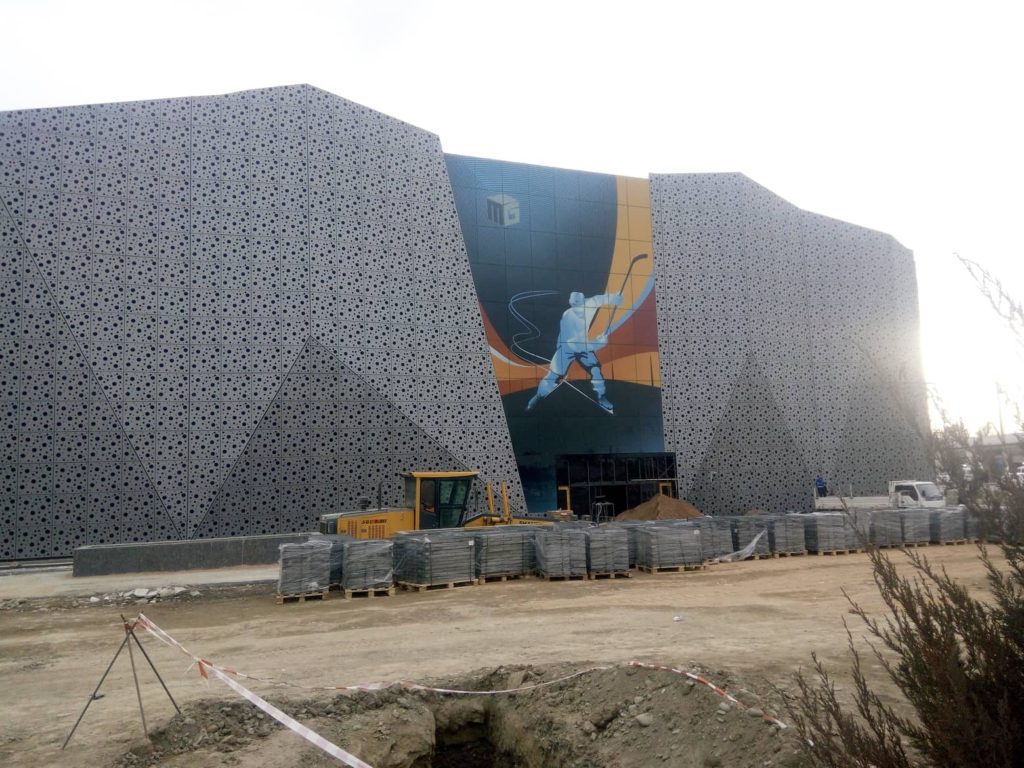 大統領がサマルカンドに来るというので、超突貫工事でアイスリンクが出来ている。ホッケーとアイスダンスが出来る広さを誇っているらしいが、現在はまだ外観のみ写真可能だ。